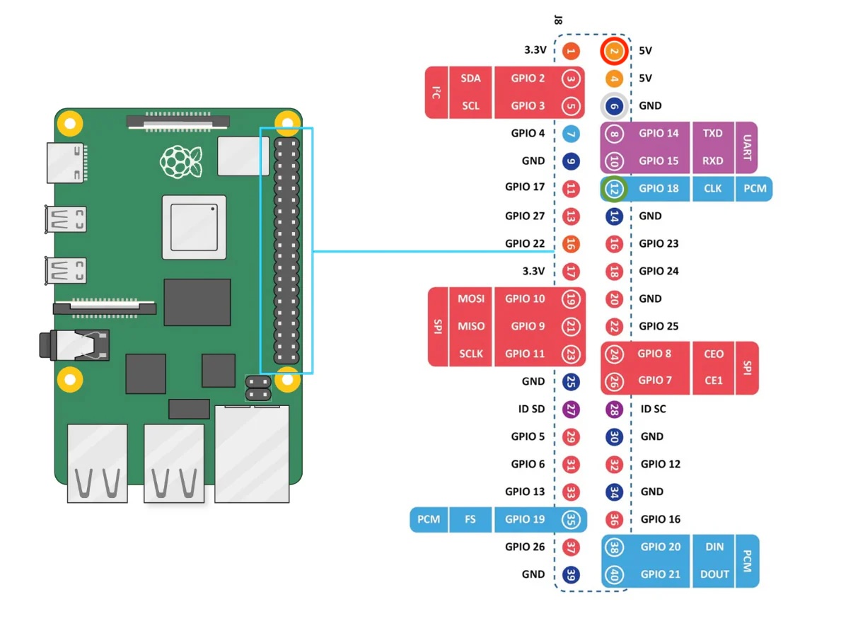NOTE: The wiring diagram for the Raspberry Pi 5 has changed with a new update! If you are using an OS version newer than the Beta version released on December 30, 2025 (2025-12-30), please follow the instructions below. If you are running an older OS version, refer to the wiring diagram found here.