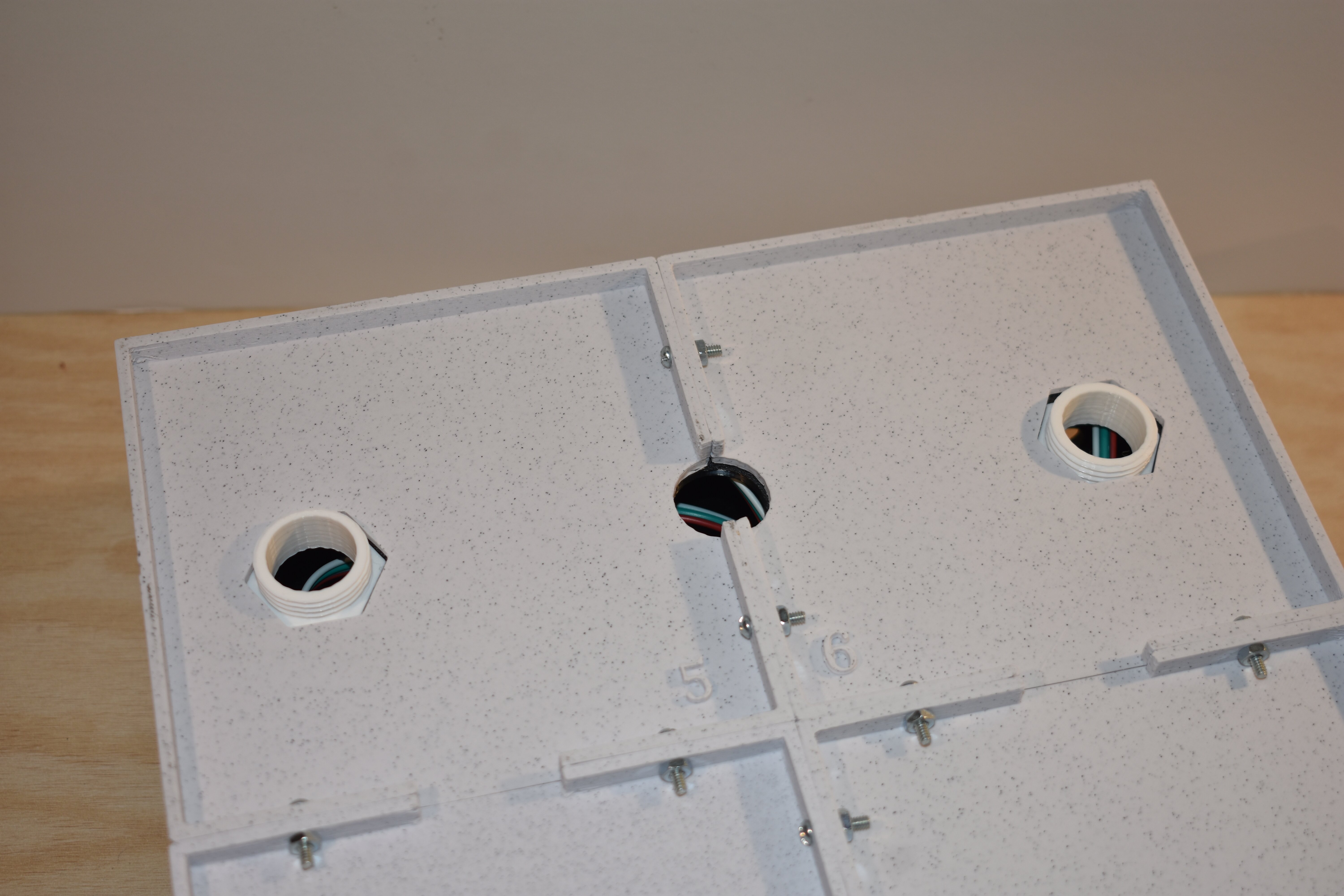 Depending on whether you printed the components for the wall yourself, and the size of your 3D printer, you might have needed to print the various parts of the Wall in two parts or even more. If you printed all of the components in one part, you can skip this step and move on to the section titled Wiring up the LED Arrays