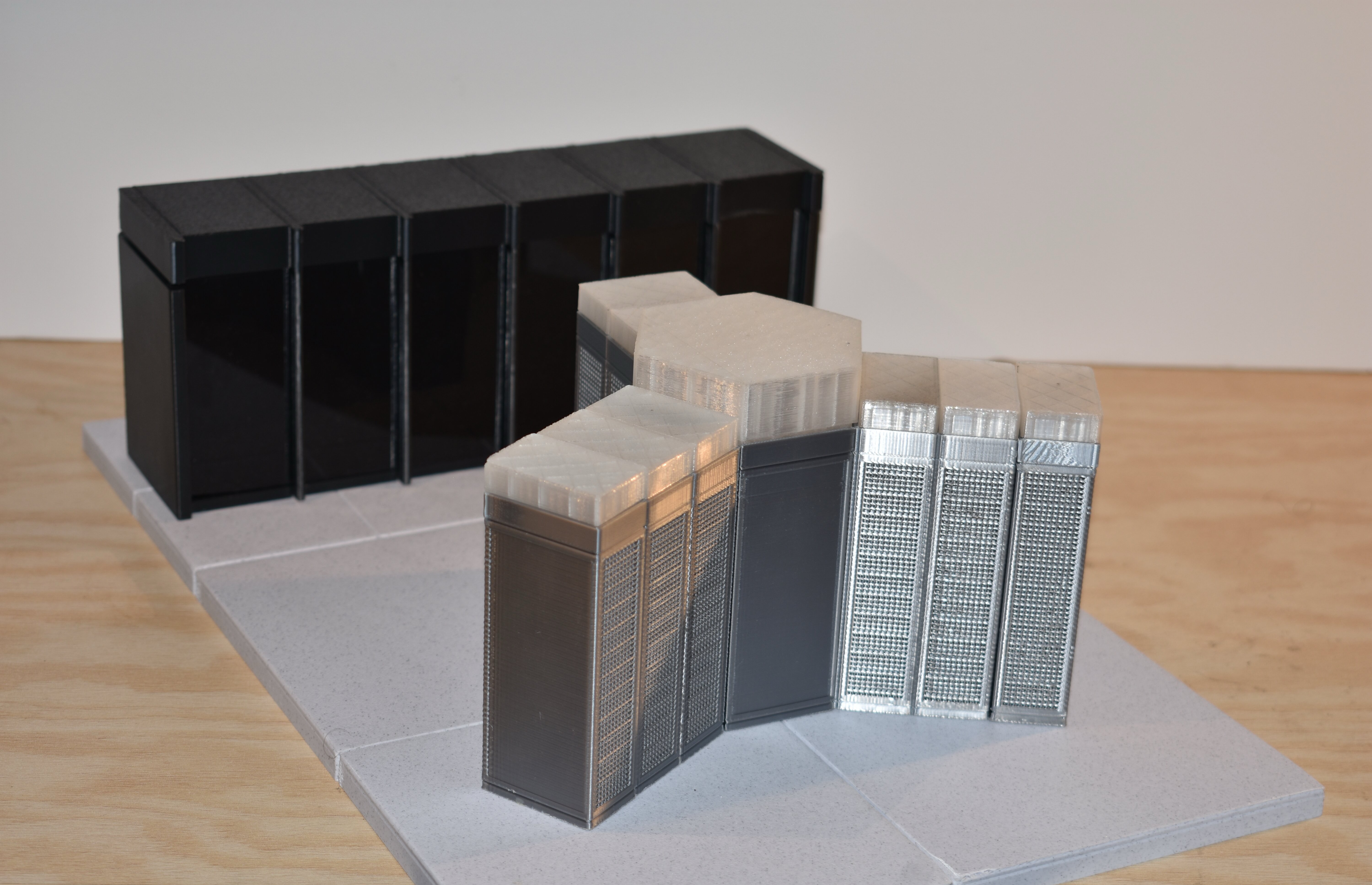 The outside of the main Cryostat and RTE Server model and the inside of the 3 stand alone single RTE Servers (R2_NarrowServerSingle) connect with Magnets, alowing one to demonstrate the configurability of the system. Fit 2 large (15x2mm) magnets into the indents or pockets on the outer edge of each of the 3 RTE “arms”. Make sure they are all the same way round, so the RTEs will attach. Do the same with the individual RTE Servers.