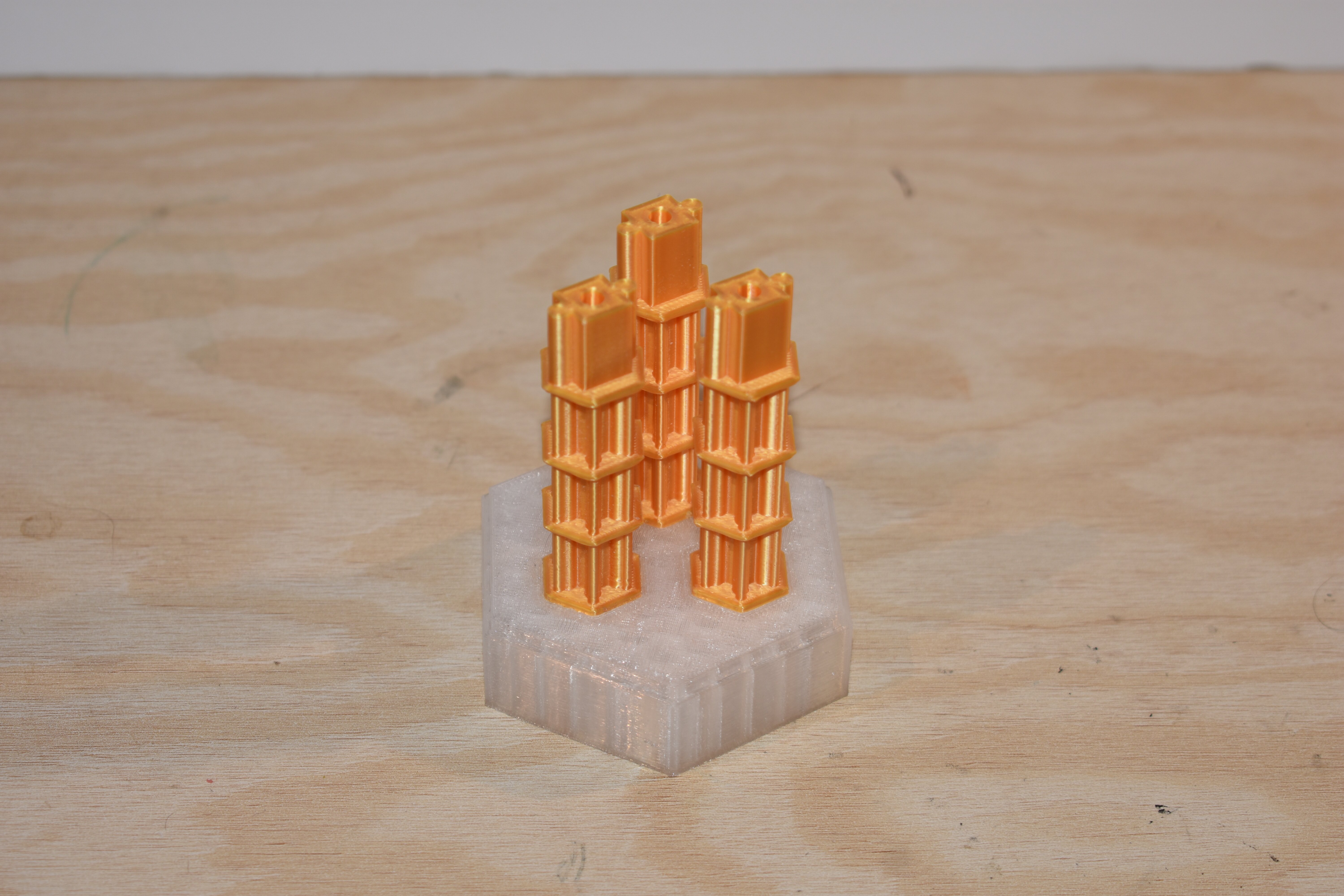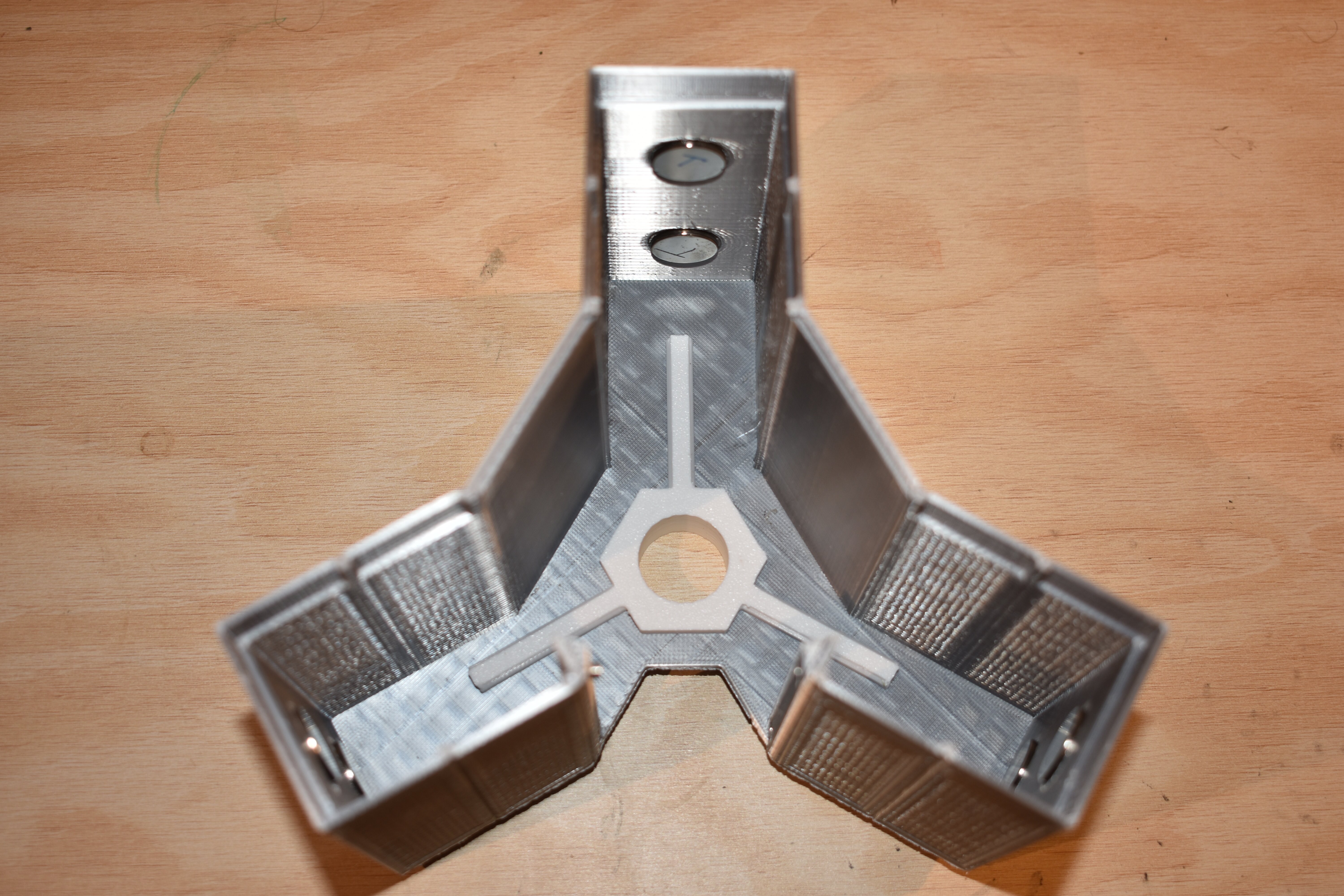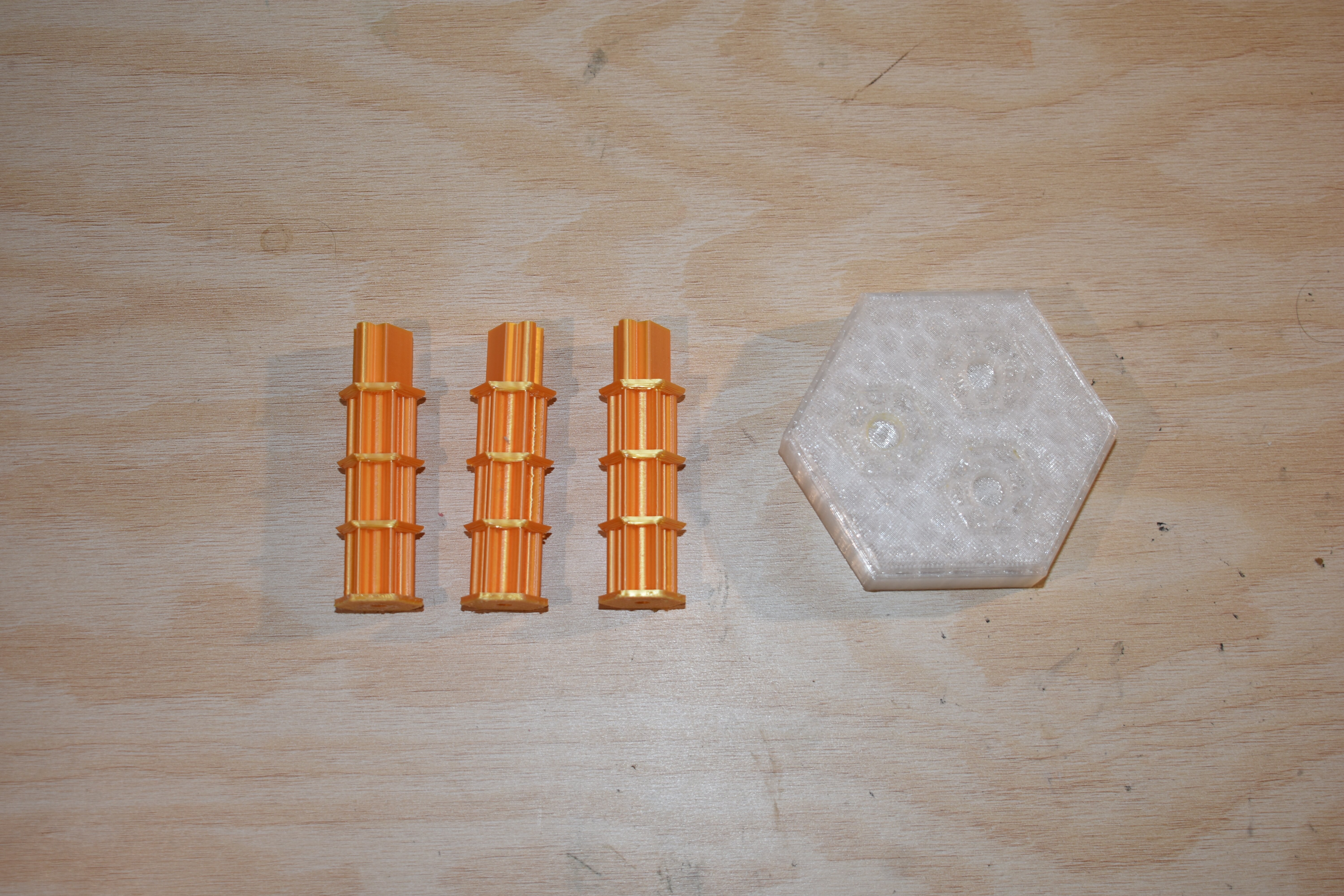 The main Lid (R2_CryoLid-Simple) and Chandeliers (R2_ChandelierSingle) should be glued together. Print 3 Chandeliers, hex base down, and glue them to your “Cap”. You can print whatever color you want but we recommend the Silk Gold. They have a hollow core in case you want to do anything creative with LEDs or other wiring.